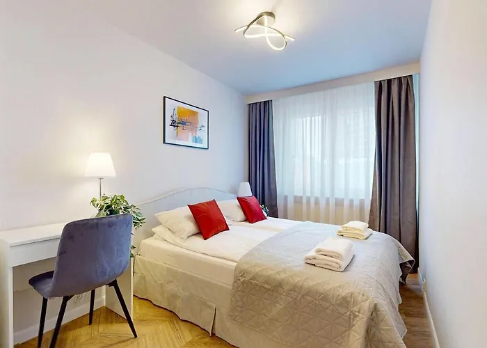 وتشمل مرافق الخدمة الذاتية المطبخ المجهز. تقع محطة مترو Rondo ONZ على بعد 400 متر، وتوفّر إمكانية الوصول إلى بقية أنحاء وارسو. يمكنك الاستمتاع بالشرفة الّتي تطلّ على المدينة.